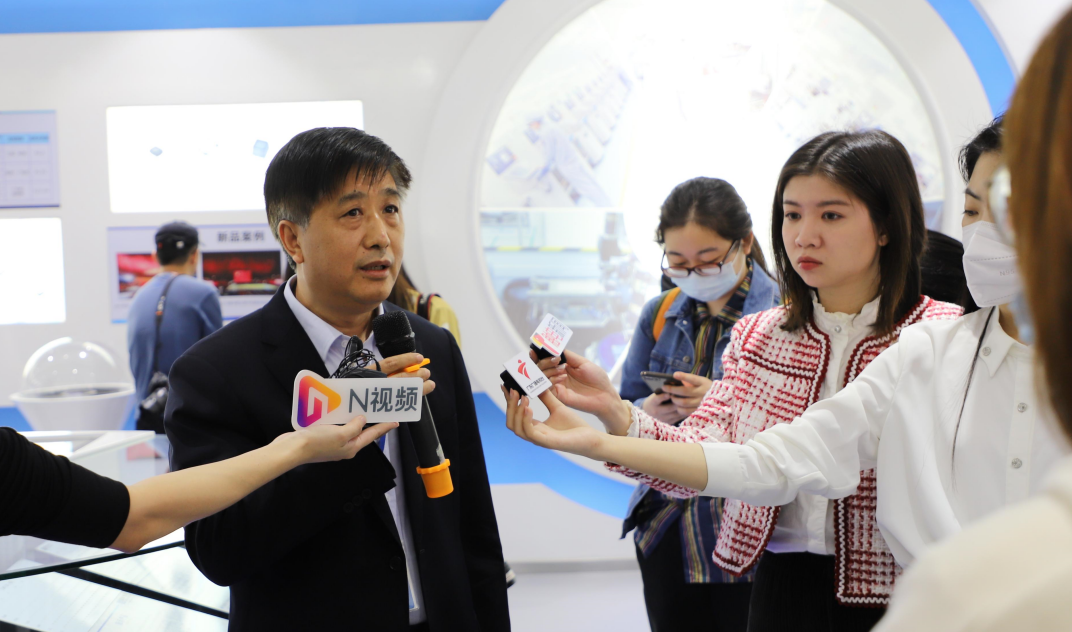 ▲LETOU光电党委副书记、董事、工会主席万山接受媒体记者采访。