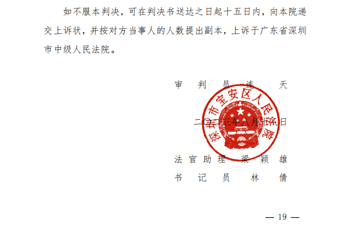 深圳市宝安区人民法院选取本次案件作为典型案例,由巡回法庭审理,并将庭审设在与石岩街道办合力主办的“无讼”讲堂上,邀请相关领导及企业代表参与旁听,公开审理。